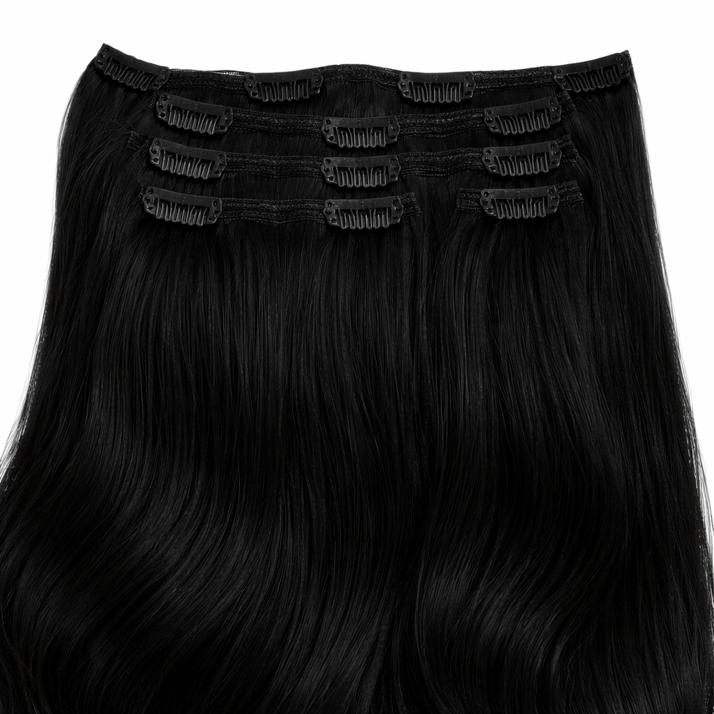 Clip-in hair extensions, also called Clip-on hair extensions or clip-in extensions. The hair is attached with the 16 clips that are sewn into the hair.